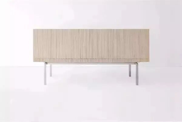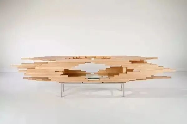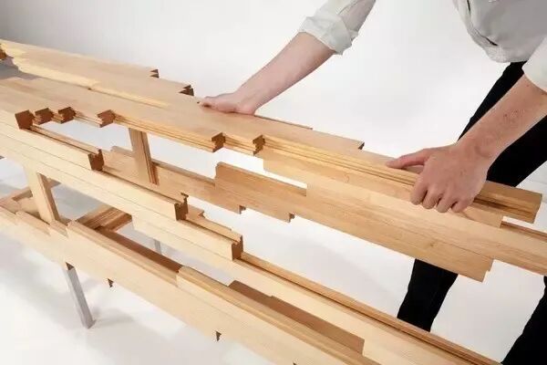 设计师将我们司空见惯的柜子重新塑造,以一个令人耳止一新的方式展现在我们眼前,也体现了他擅长将工艺与材料转变为艺术的卓越能力。整个柜体由100根「牵一发而动全身」的木条组成,当你拉动任意一条木条,相邻的木条都会随之而动,像纸扇的开启方式、也像运动的波浪,既精致又充满美感。
