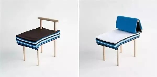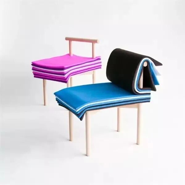 这是一把从书本中获得灵感的椅子,来自日本设计团队6674。设计师在椅面上装配了多层缤纷多彩的柔软坐垫 ,鼓励用户与椅子互动、随时根据自己的需要利用软垫来调节高度,而往后掀开的软垫同时又可以转变了舒适的靠背,简单有趣。