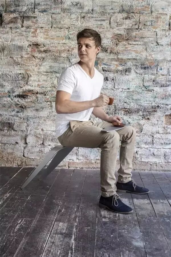 这款独特座椅名为「Mono chair」,乍一看会以为它是一个抽象的雕塑。而实际上,它却是一把只有两条后腿的座椅。