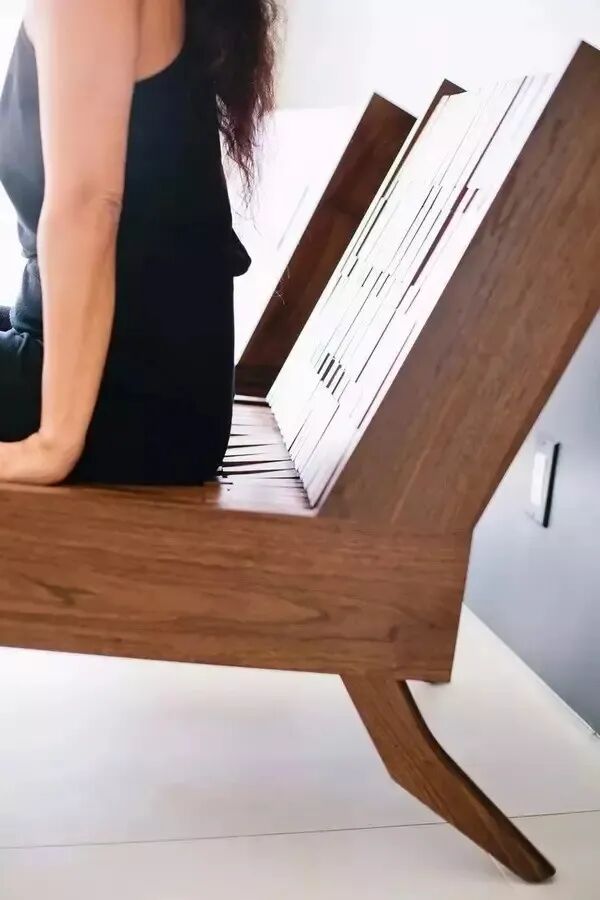 设计师将整个坐具的表面制作成钢琴键一样的形式,通过在一块块小木条下边增加弹簧机构来实现变形的目的,只要使用者坐上去表面就会随着人体的生理曲线发生变化,让人们感觉就好像坐在了舒适的沙发上一样。