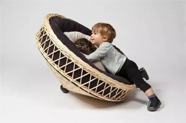 这些用小柳条元素设计出来的家具,可以像飞机,像笼子,或者像陀螺、轮子等,富有想象力的样式,完全可以满足孩子们的好奇心,让孩子和家具充分地互动起来。