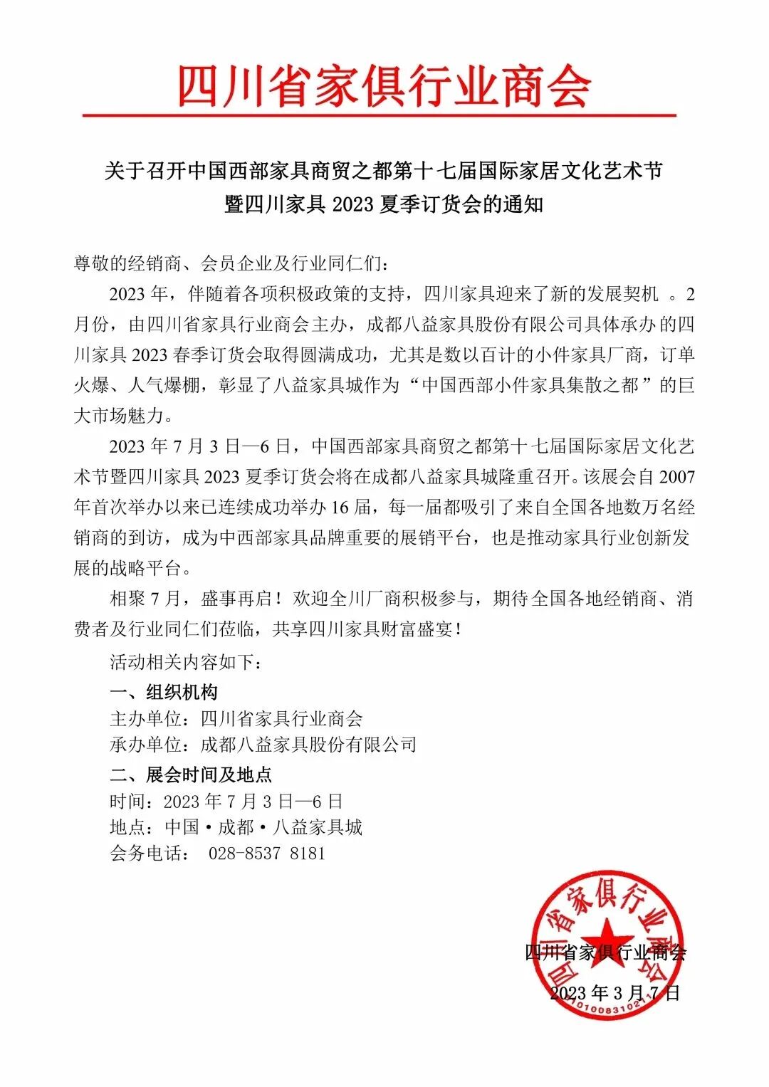 官宣定档!四川家具2023夏季订货会,相约行业盛宴,共创四川家具辉煌!