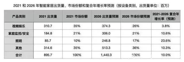 来自IDC的统计显示,2021年全球智能家居设备出货量超过8.95亿台,其中,中国出货量超2.2亿台,同比增长9.2%。预计2022年受经济状况影响,全球出货量将下降到8.74亿台,降幅约2.6%,但中国市场的出货量将突破2.6亿台,同比增长17.1%。