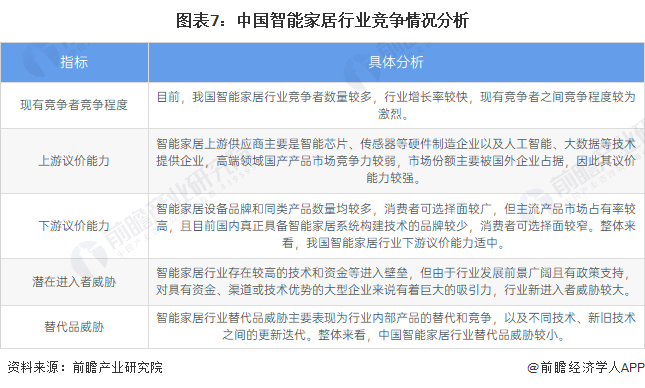 根据波特五力竞争模型分析,目前我国智能家居行业竞争情况如下: