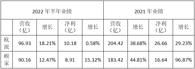 行业观察 | 欧派、顾家2022年上半年业绩报告发布,两家有何不同