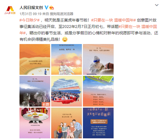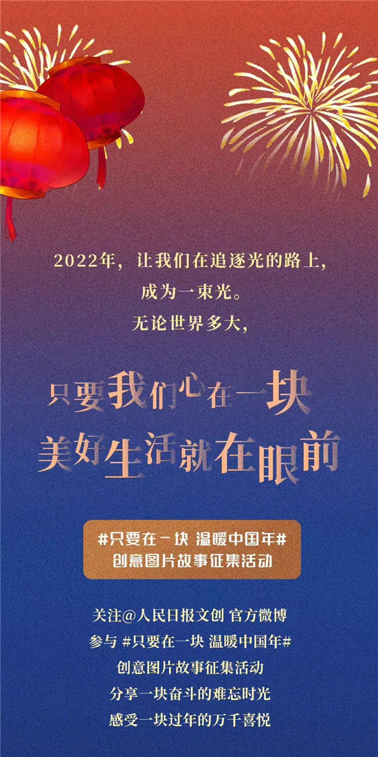 2022虎年新春佳节之际,冠珠瓷砖X人民日报发布了一则长图 “无论世界多大,只要我们在一块”,并在人民网微博、人民日报文创客户端同时发起的#只要在一块 温暖中国年#创意图片故事征集活动。