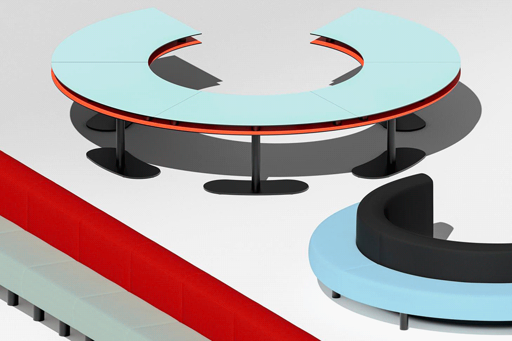 该系列的每款桌子都有双层表面,可以根据桌子用途灵活变换。同时,家具中还加入了隔音材质,在保证动线灵活的同时,创造了相对安静的办公环境。