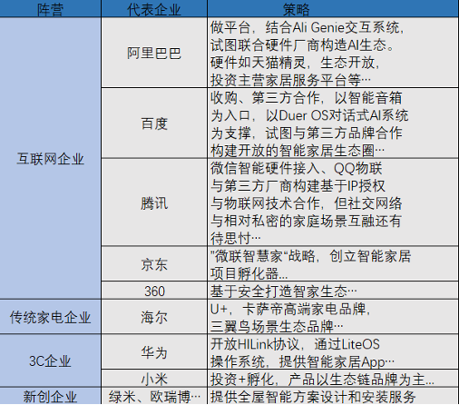 从单品智能步入智能互联,各个阵营的代表玩家则有以下策略: