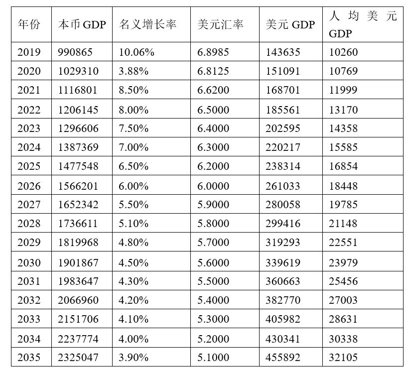 表1:2035年我国达到中等发达国家水平的增长预测