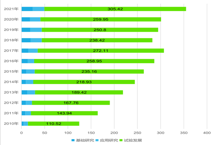 图2:2010年-2021年青岛规上工业企业研发经费使用比较
