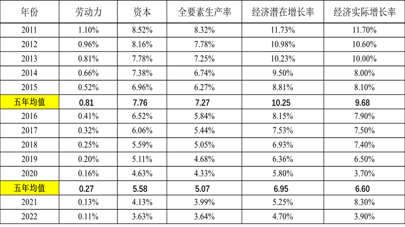 表5:2011年以来青岛各类生产要素潜在增速及经济潜在增长率