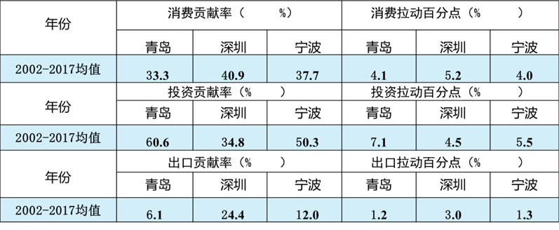 表7:青岛与深圳、宁波三大需求贡献率及对增长的拉动力比较