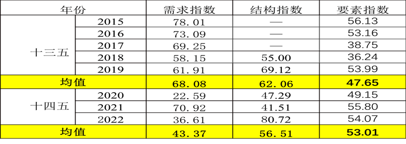 从经济增长的动力机制转换看。“十三五”时期以来,需求指数的贡献持续下降,而要素指数和结构指数的贡献越来越大,这表明,“十三五”以来新旧动能转换取得较为明显的成效。