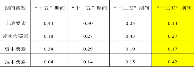 表4:“十五”至“十三五”不同生产要素的产出弹性系数比较