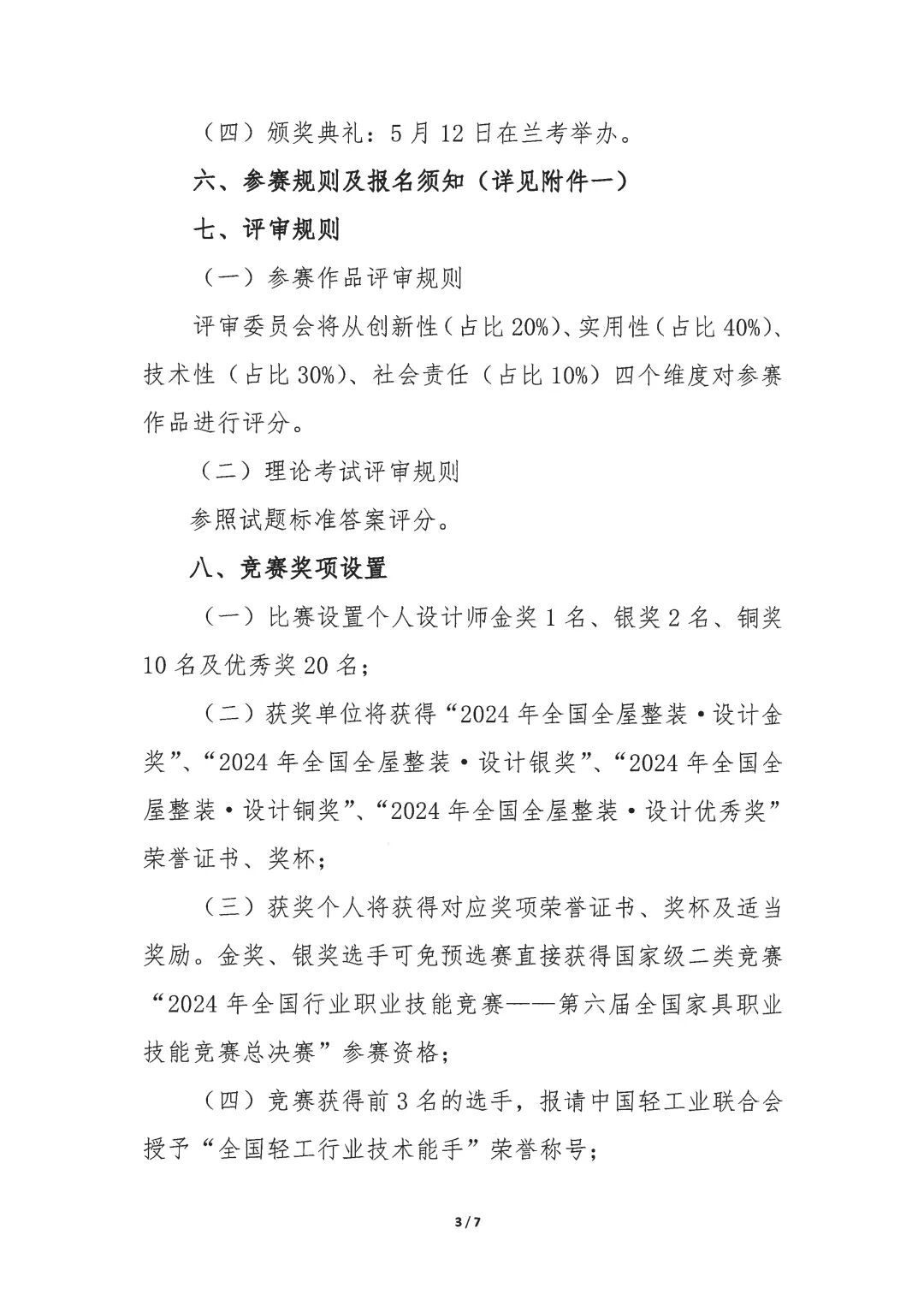 关于举办2024年全国家具行业全屋整装设计职业技能竞赛的通知