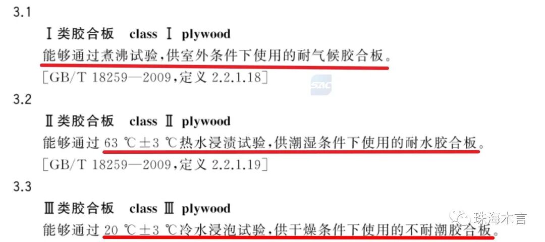 而国标GB/T 9846-2015(普通胶合板)标准中的胶合强度检测,也将不同领域使用的胶合板分为了三类,如下图: