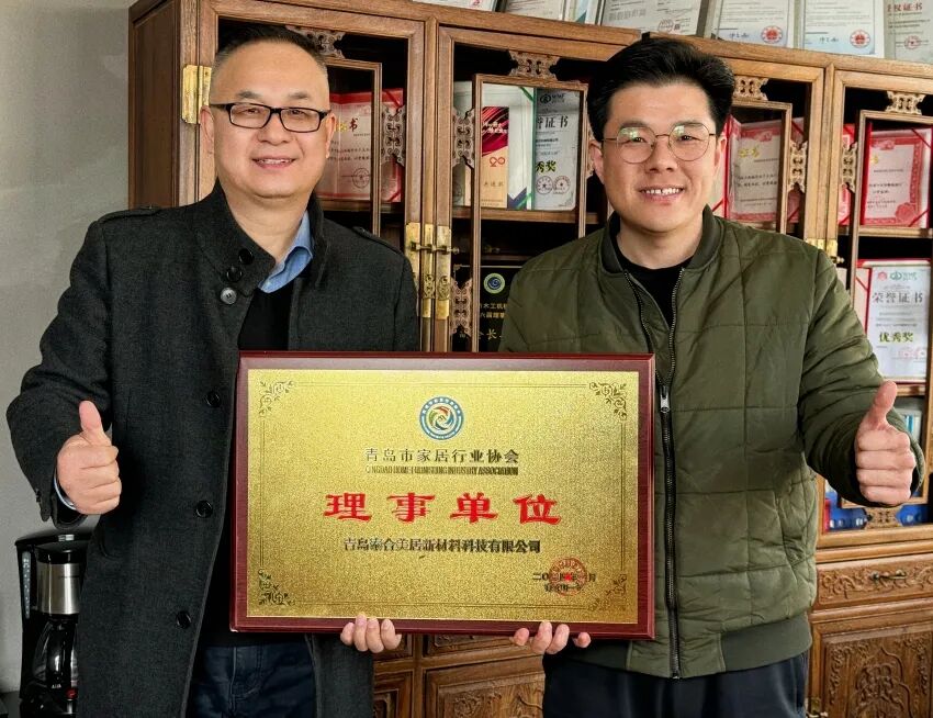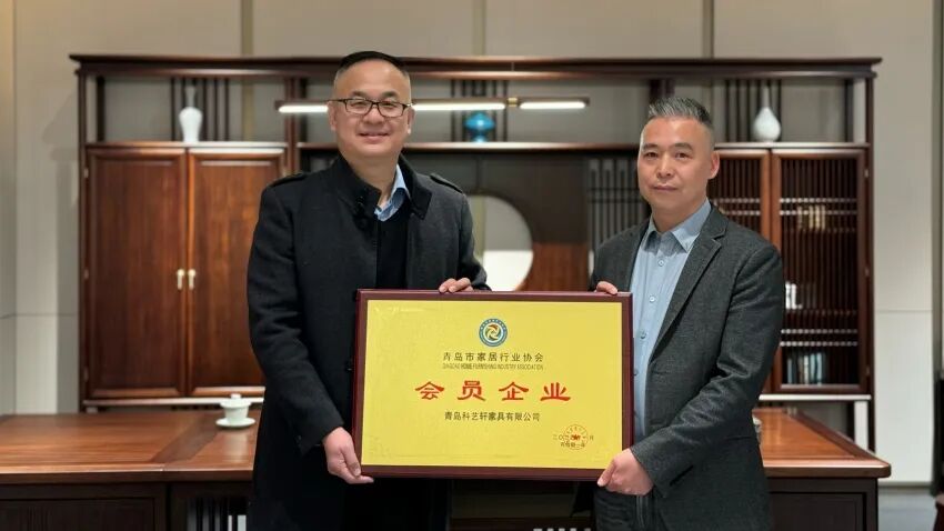 2月26日,秘书处一行走访了会员单位——青岛科艺轩家具有限公司,秘书长徐宝传为总经理邵连勋授牌。