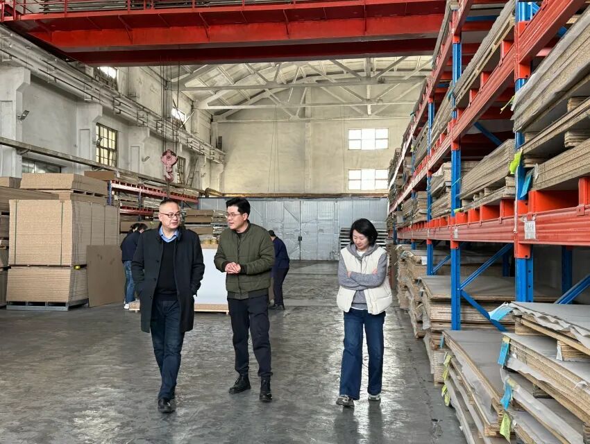 2月26日,秘书处一行走访理事单位——青岛泰合美居新材料有限公司,为其授牌并参观了车间。