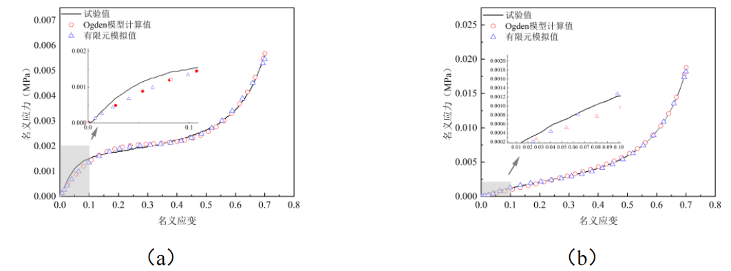 图3 聚氨酯泡沫海绵和乳胶海绵力学响应[1](a)聚氨酯泡沫海绵,(b)乳胶海绵