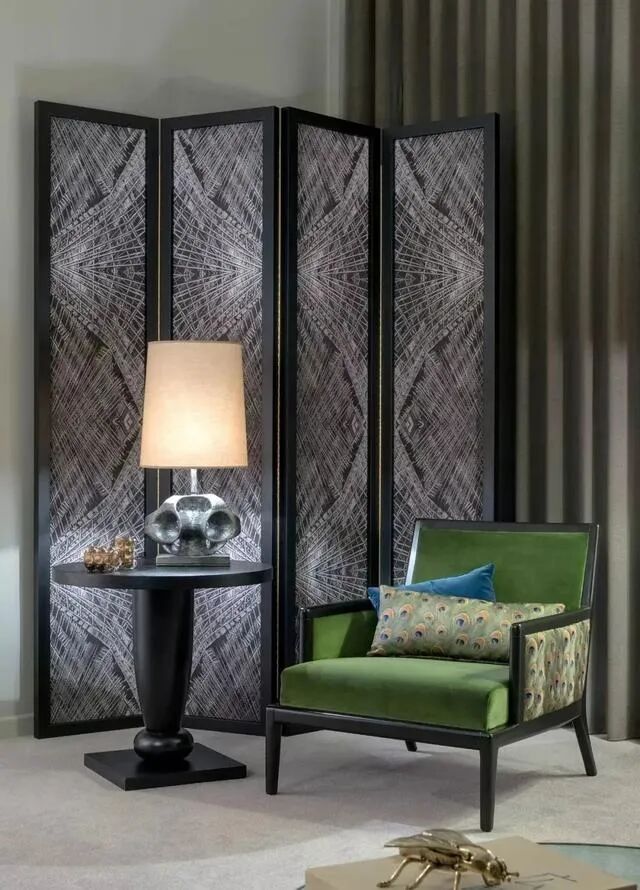 一般说来,带座屏风较重,曲屏风较轻。屏风挡住人们的视线、更突出了屏风前的陈设,造成一种庄严、肃穆的气氛。L
