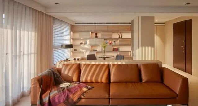 在客厅安装一个三导轨的窗帘轨道,最外层装唯美仙气的纱帘,可以让家人充分享受阳光;中间层装半遮光的麻/聚酯纤维混纺薄帘,在待客时使用采光度很好,在睡觉时使用私密度也不错;最里层装带遮光布的聚酯纤维厚帘,在用投影设备或看电视时还能达到很好的光影效果。