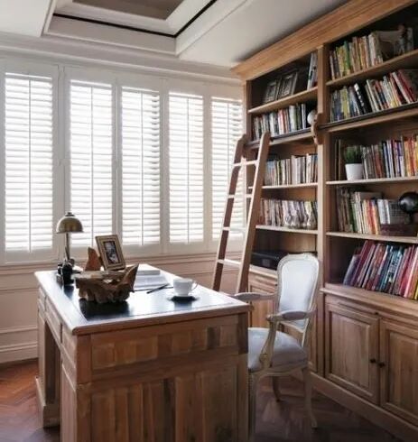 书房一切皆为静,在这方寸之地,疲惫的灵魂可以得到诗意的栖居。以天然竹木为原材料的“竹帘”、“木百叶帘”是书房的首选,颜色上建议以淡绿、淡蓝等颜色为主,图案简洁、淡雅、清新,容易让人放松。