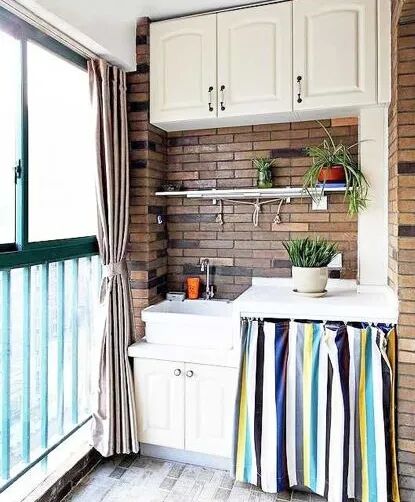 阳台是光线最强的地方,所以阳台窗帘的主要考虑因素是遮光,相较于其他材质布帘遮光效果确实更佳,如果住在低楼层可以选择稍微厚一点的布帘,还能起到降噪效果。如果担心布帘容易脏,还可以搭配纱帘使用,将纱帘装在贴近窗户的位置,既充当窗纱又有氛围感。