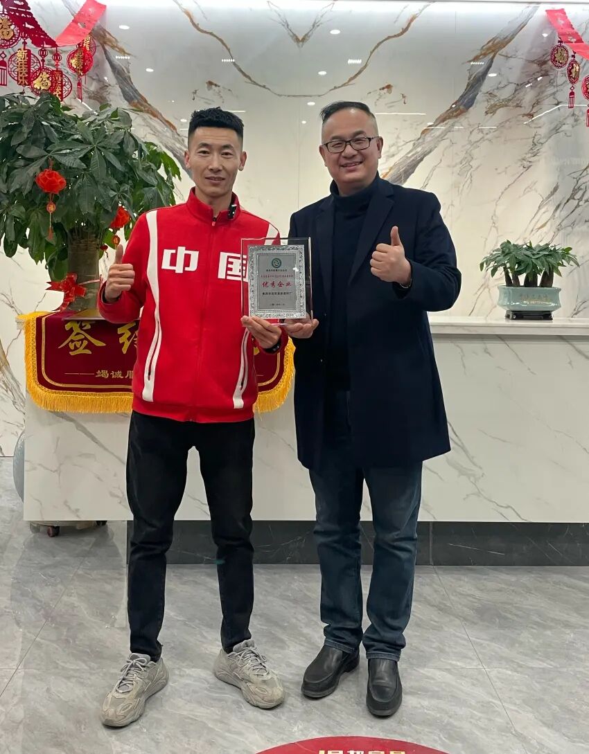 徐秘书长为黄总颁发青岛家居行业2023年度全屋定制优秀企业奖牌