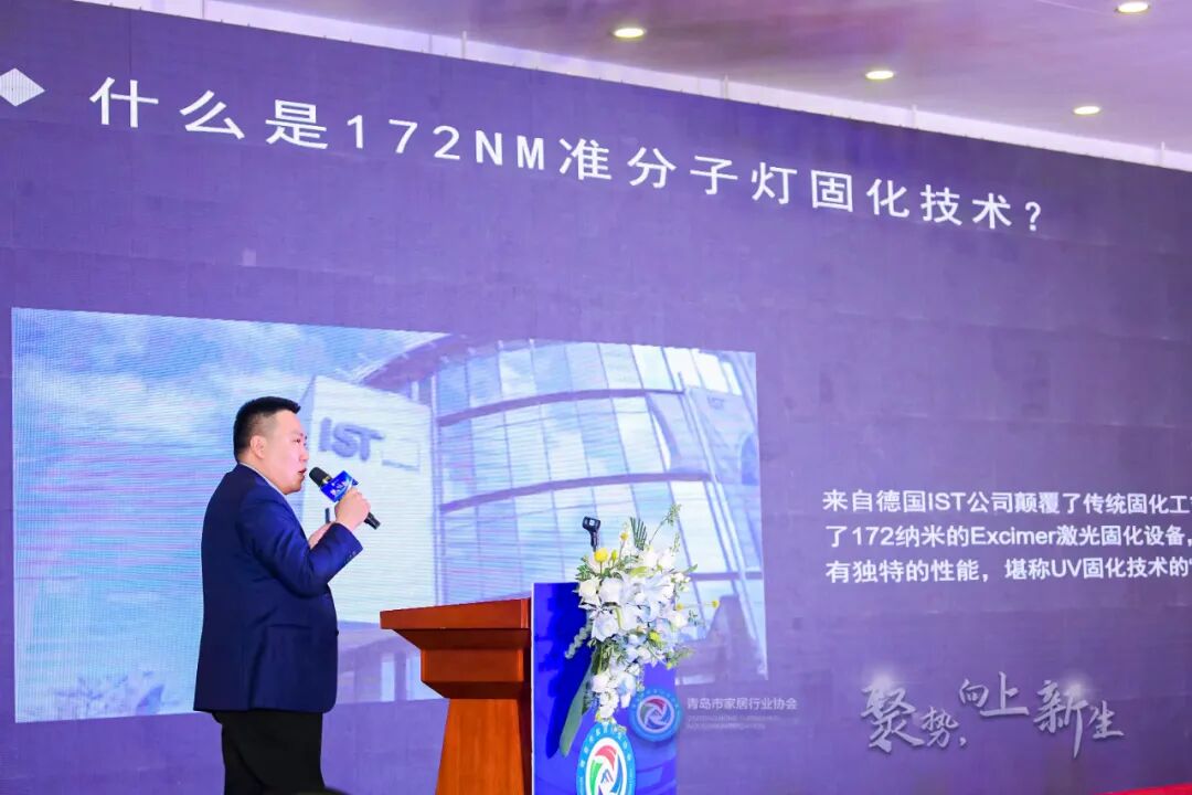 山东汇诚智能装备有限公司销售经理张国栋作了题为《整装向新.汇诚智造》的报告,介绍了汇诚装备的发展历程、服务工程案例、市场分析、板式家具新设备和实木家具数控设备的特点等。