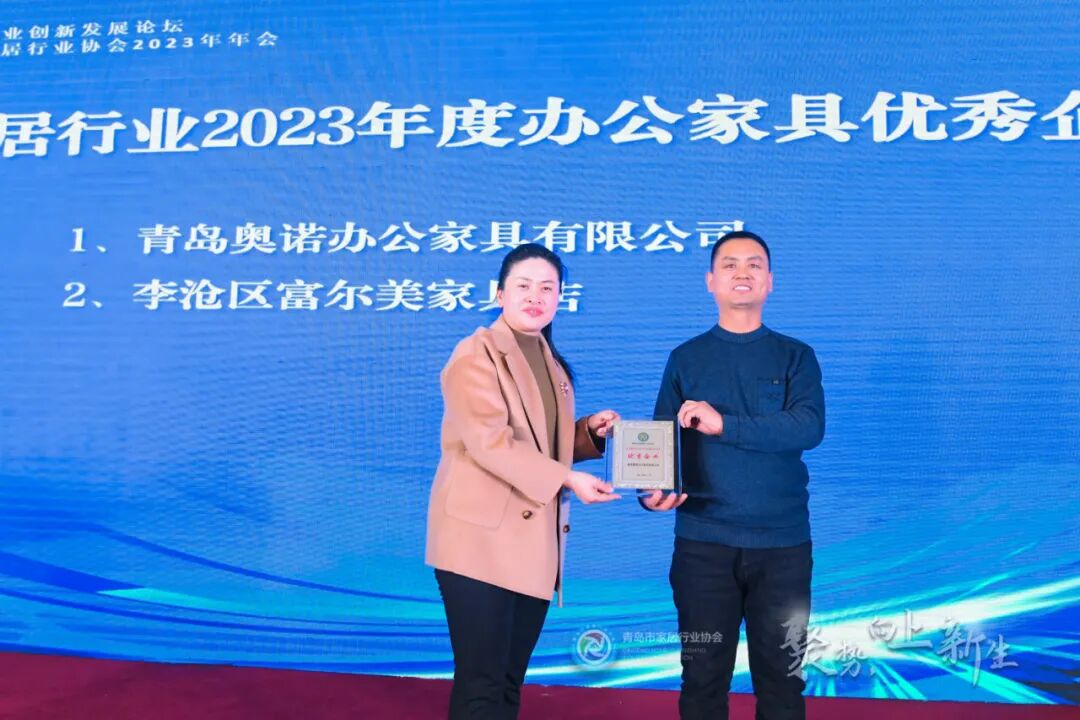 戚会长为“2023年度办公家具优秀企业”颁奖