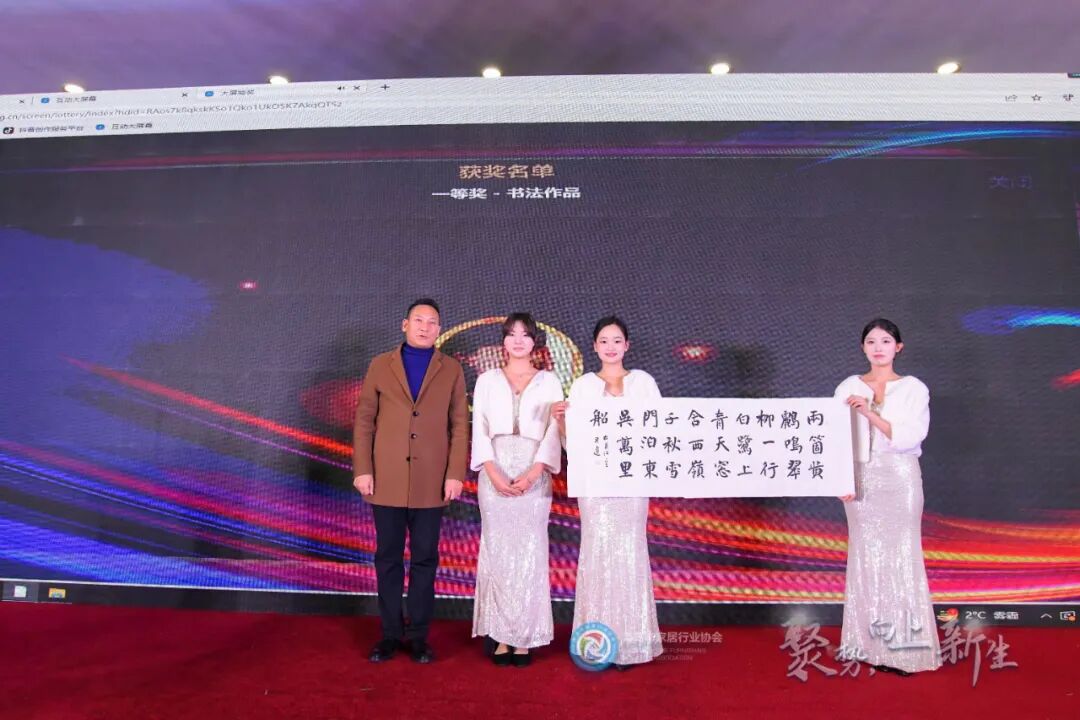 盛凯木业董事长张金海为晚宴一等奖获得者颁发书法作品