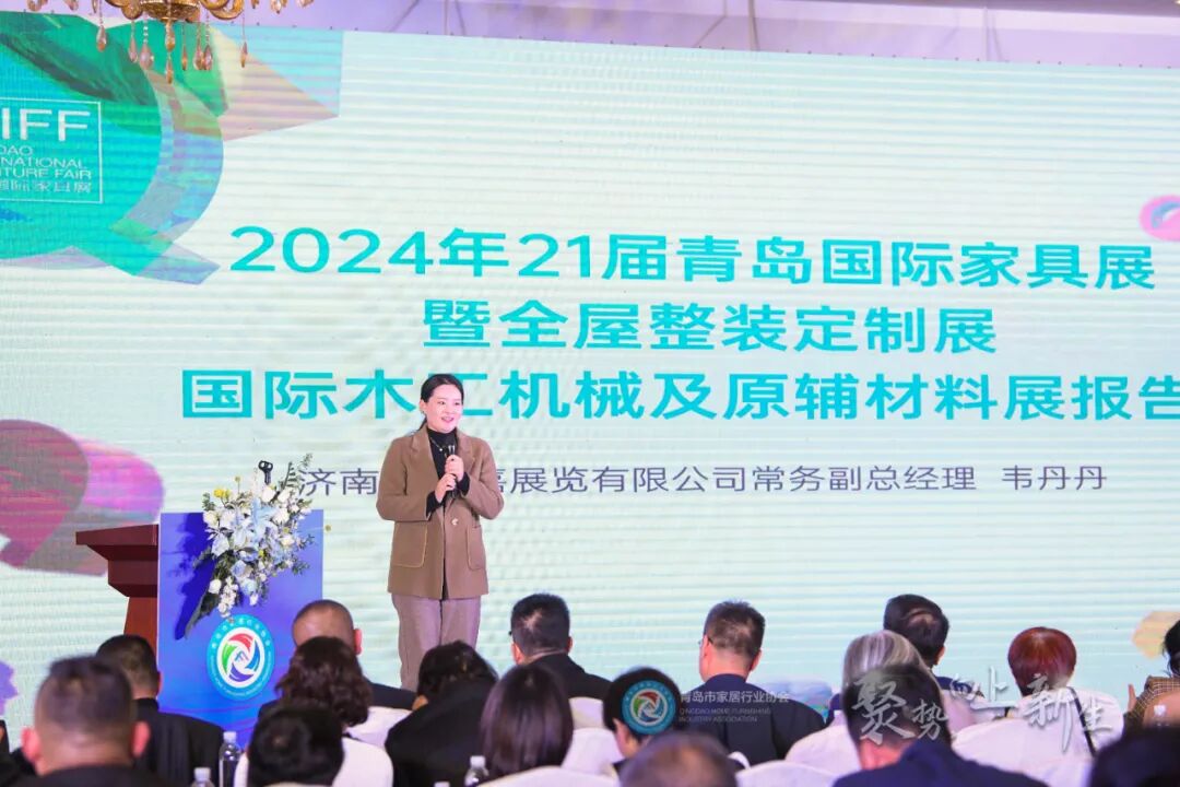 济南德瑞嘉展览有限公司常务副总经理韦丹丹汇报了2024年第21届青岛国际家具展暨全屋整装定制展、国际木工机械及原辅材料展的基本情况。
