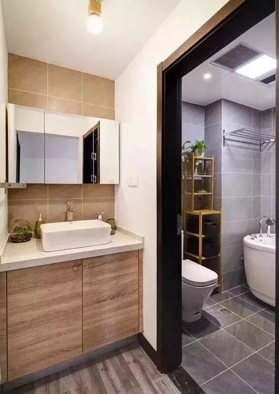 简单来说,除了干湿分离区外,再将洗漱台单独分离出去(就是将洗漱台挪到卫生间外面),让洗漱和沐浴彻底分开,既节约时间又保证了卫生。