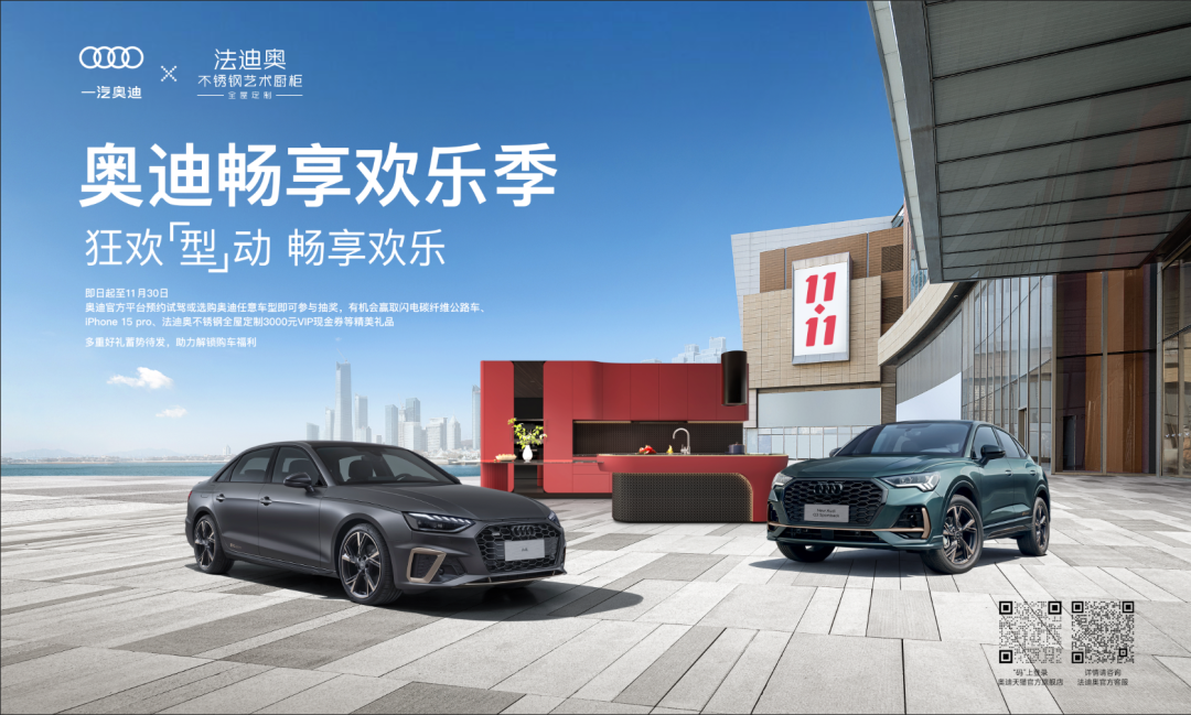 此外,随着2023年品牌营销进入冲刺阶段,法迪奥以双十一、双十二这些关键营销节点为契机,携手奥迪打造家居&汽车线上线下双线联动的一系列营销活动,通过场景的深度绑定,潜移默化地对消费者进行品牌认知培育,最大化释放品牌跨界势能,与众多年轻消费者形成深层次互动,成功让此次联名活动实现了 1+1>2 的传播效果。