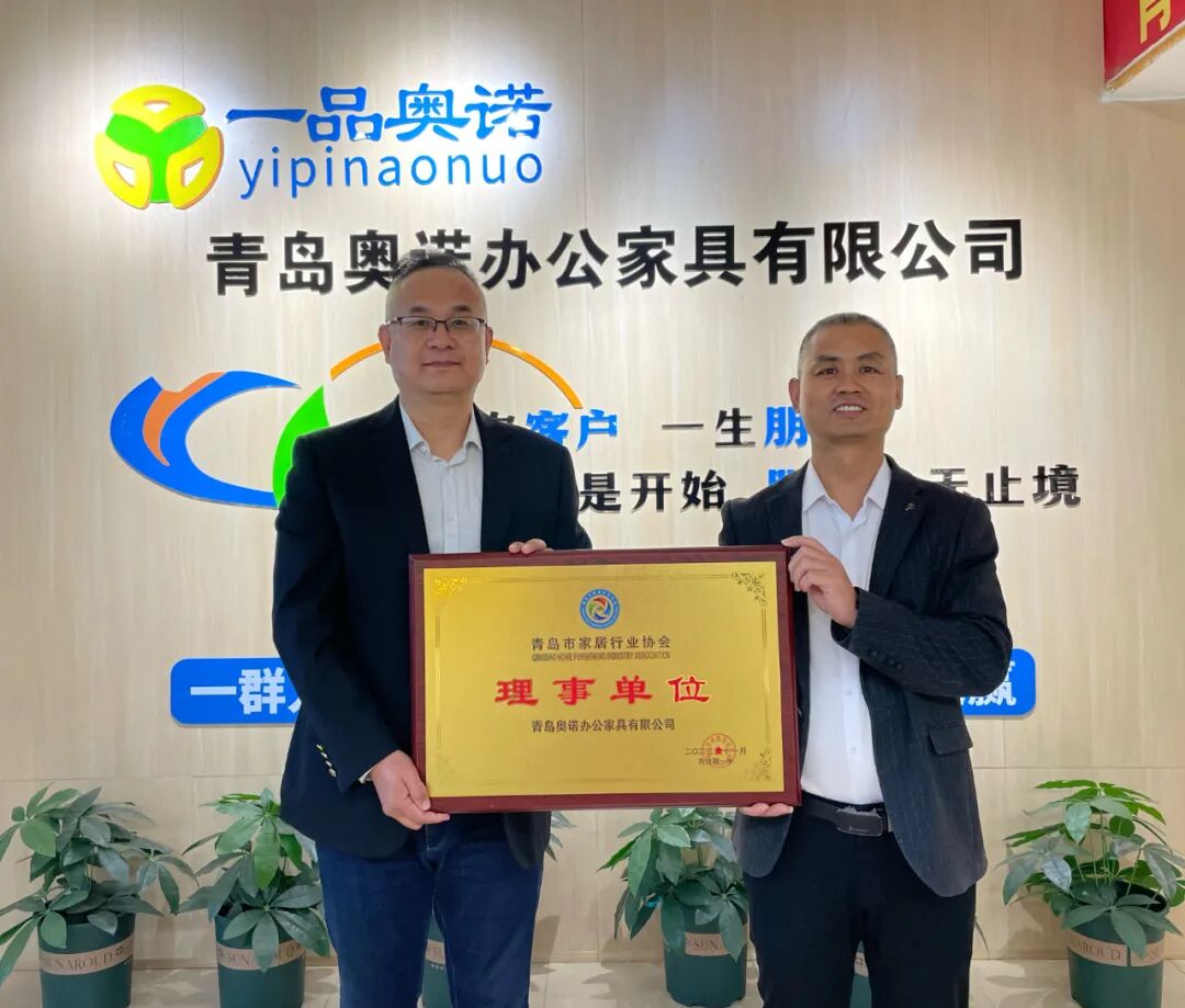 青岛市家居行业协会执行会长兼秘书长到协会新晋理事单位青岛奥诺办公家具有限公司走访考察并为其授牌。徐秘书长在总经理郭可亮的带领下参观了工厂生产线及展厅,一起就办公家具如何实现转型升级、如何加强设计提升产品附加值进行了深入的探讨。