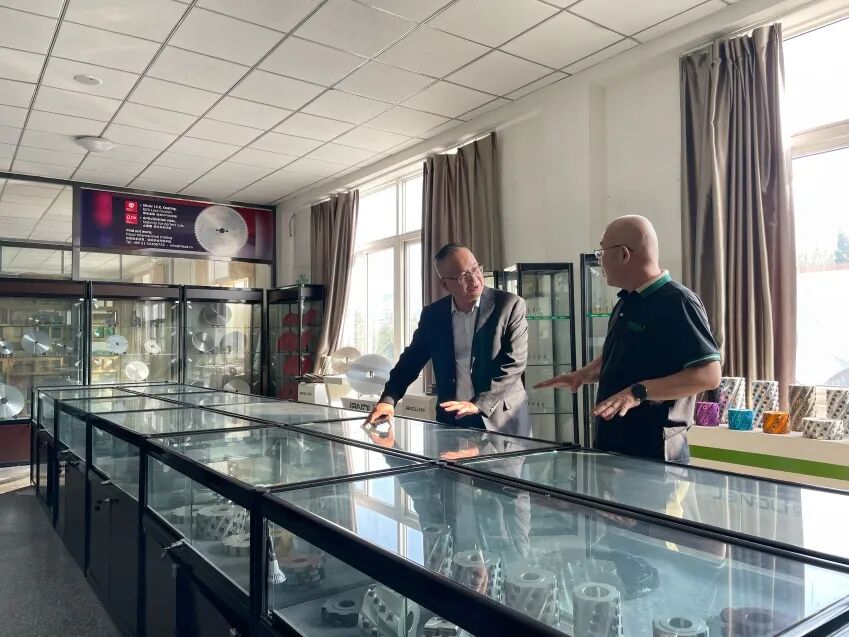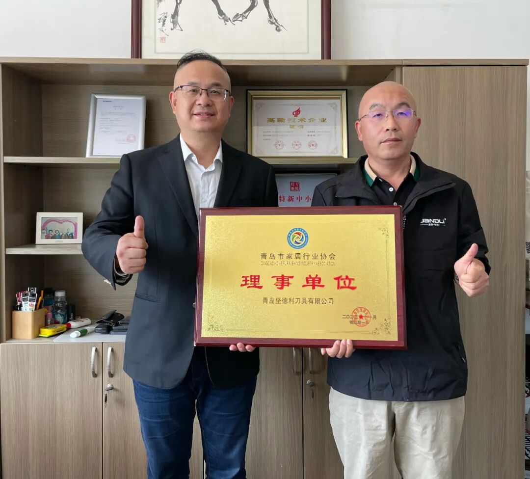 青岛市家居行业协会执行会长兼秘书长到协会新晋理事单位青岛坚德利刀具有限公司考察交流并为其授牌。总经理张立民陪同参观了工厂车间及刀具展厅。