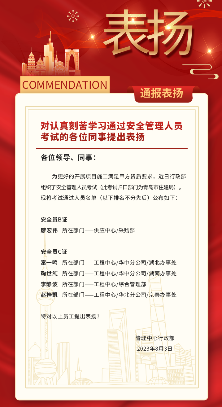 青居晨报:优菲家居表彰通过考试的安全管理员工