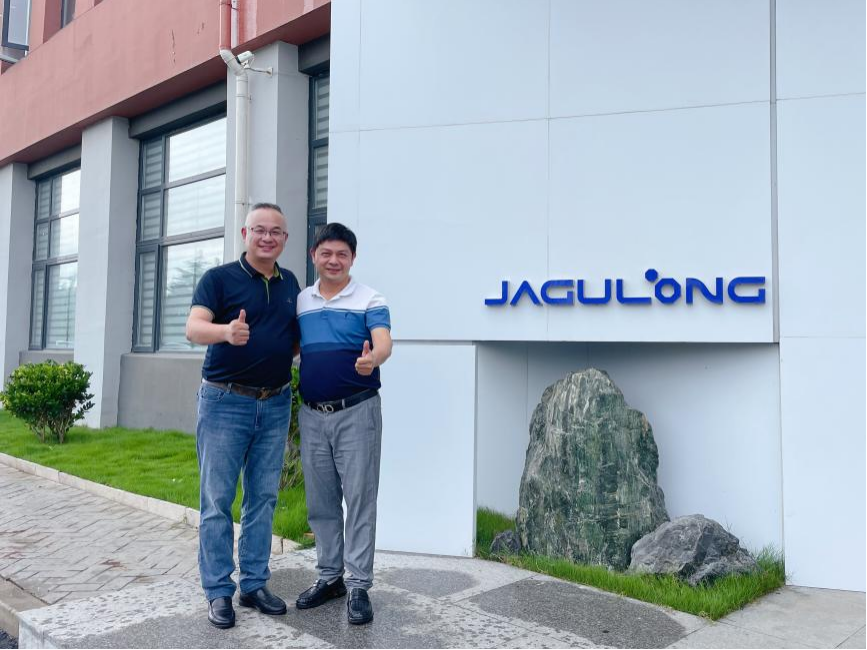 协会秘书长徐宝传与佳固五金董事长林伟彬合影