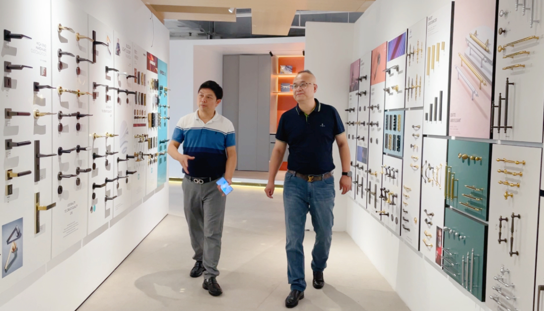 董事长林伟彬陪同徐秘书长一行参观了总部展厅、办公室和仓库并座谈交流,林总介绍了青岛佳固商贸有限公司的创业历程以及目前的商业版图,佳固商贸专注于装修五金和配件27年,年前斥巨资购买位于青岛市城阳区润成天谷产业园面积达4500平方整栋楼房作为总部,产品除了自主品牌--萨比特五金外,还代理海蒂诗、诺米、星徽、OPK等400多个国内为知名品牌。