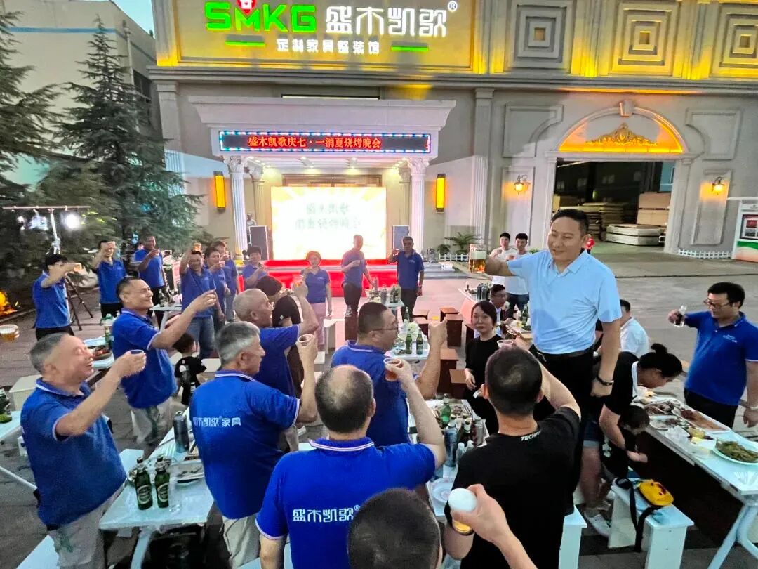 为热烈庆祝建党102周年,协会副会长单位——青岛盛凯木业有限公司在厂内隆重举行庆七·一消夏烧烤晚会。