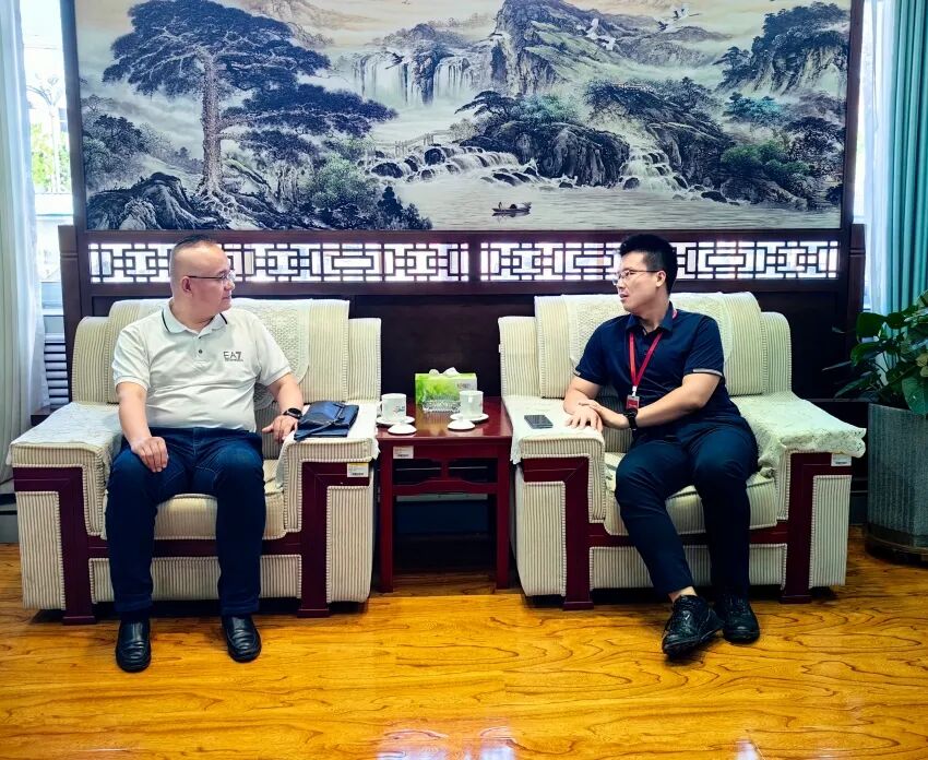 协会执行会长兼秘书长徐宝传与胶州市铺集镇隋书记讨论青岛定制家居智能制造产业集群相关问题。