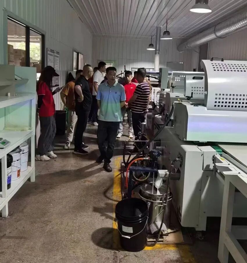 6月11日,青岛市家居行业协会执行会长兼秘书长徐宝传陪同协会理事单位青岛本木亦品新材料有限公司总经理刘旭、青岛博美家居有限公司刘克阳、尖尖角(青岛)新材料有限公司总经理姜峰等参观考察了德必隆镇江生产基地。