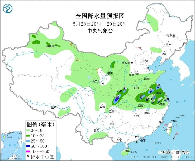今日天气:新疆沿天山地区、陕西东南部、四川东北部、重庆北部、河南西部和东南部、湖北东北部、安徽大部、江苏大部、浙江北部等地部分地区中到大雨,其中,四川东北部、安徽北部、江苏北部局地有暴雨或大暴雨。