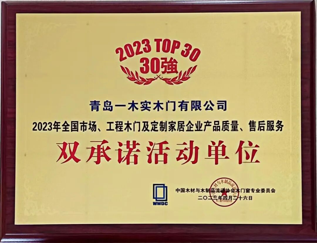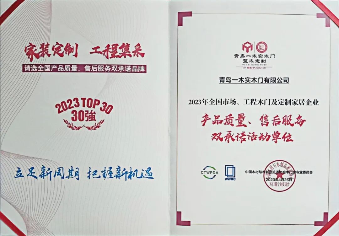 本次会议以“立足新周期,把握新机遇”为主题,共有400余人出席会议。青岛一木实木门整木定制也受邀参加了此次活动,并荣获“2023年全国市场、工程木门及定制家居企业,产品质量、售后服务双承诺活动单位”的荣誉称号。