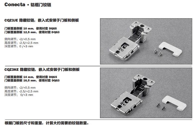 Conecta 是 Salice 的全面创新式铰链,完全隐藏于门板和柜体侧板之中。具备超凡卓越的技术性能,确保门板开关的精确控制和顺畅运行,即使是超大超重的家具门板、无论是木门还是铝框门 ...