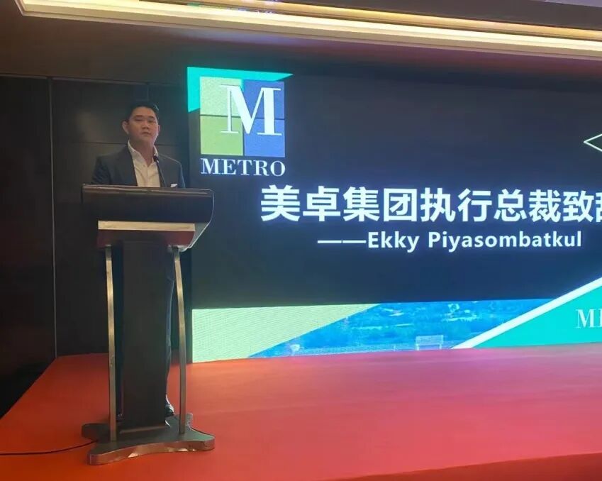 3月27日,第12届中国广州定制家居展览会暨第12届中国广州定制整装展览会在广州保利世贸博览中心隆重举行。展会开幕当天,泰国美卓集团总裁见面会同期在展馆举行。美卓集团CEO Lusamee Piyasombatkul致辞。见面会还介绍了美卓集团的发展历程。