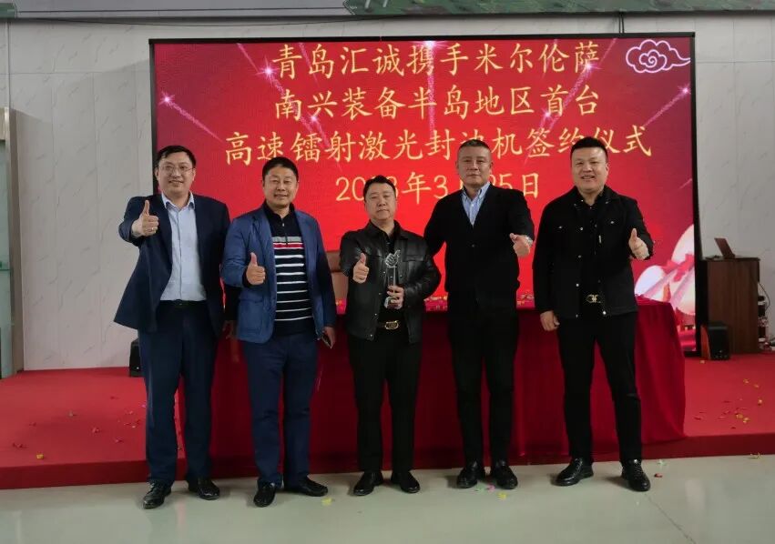3月25日上午,南兴装备与米尔伦萨、博美家居高速镭射激光封边机签约仪式在青岛城阳...