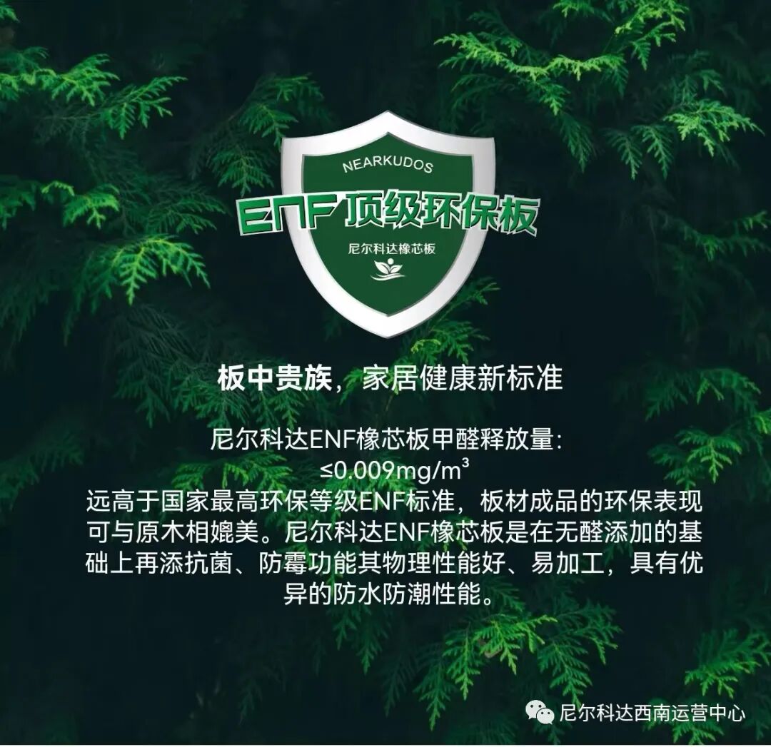 新国标中明确ENF级(≤0.025mg/ m)的标准是目前世界上最严格的甲醛标准,橡芯板甲醛释放量仅为(0.009mg/m³)超过了ENF级别(0.025mg/m³)标准。