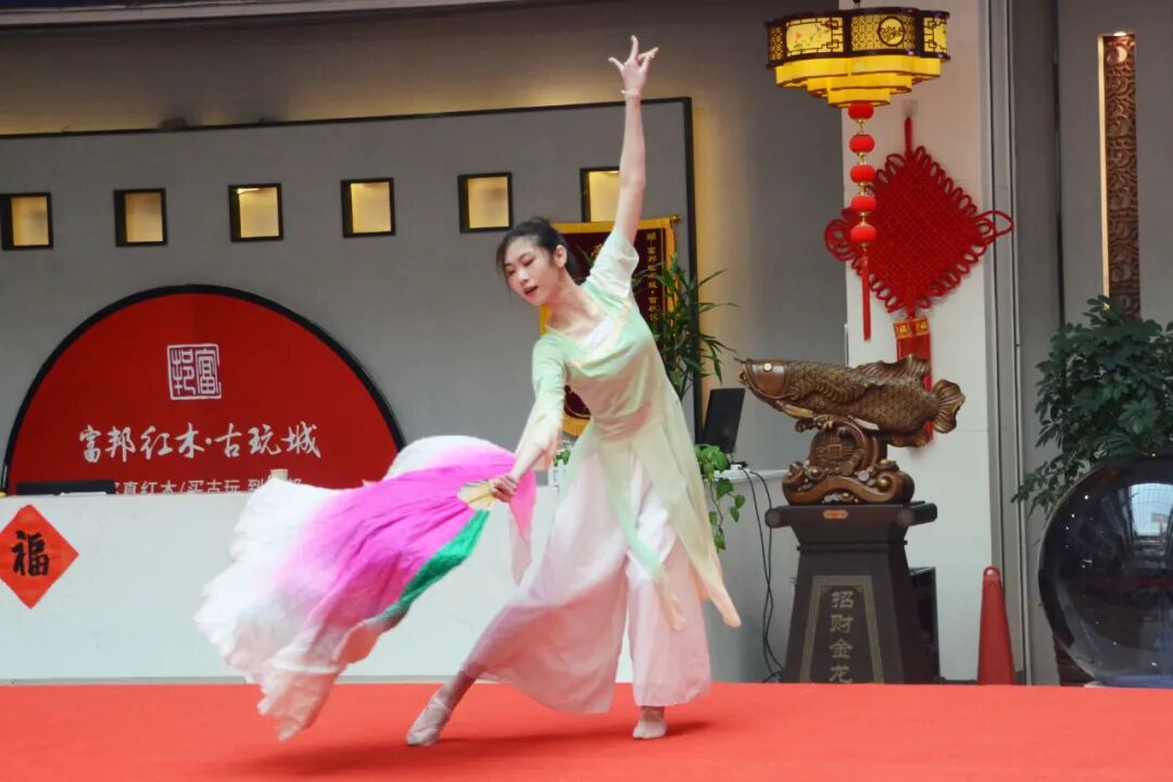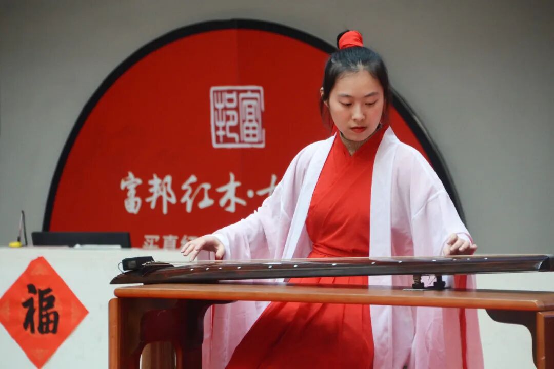 活动现场设置了面塑、扎染体验区,观众可以参与手工制作体验。同时,还有古琴合奏和书画舞蹈等非遗节目的演出。