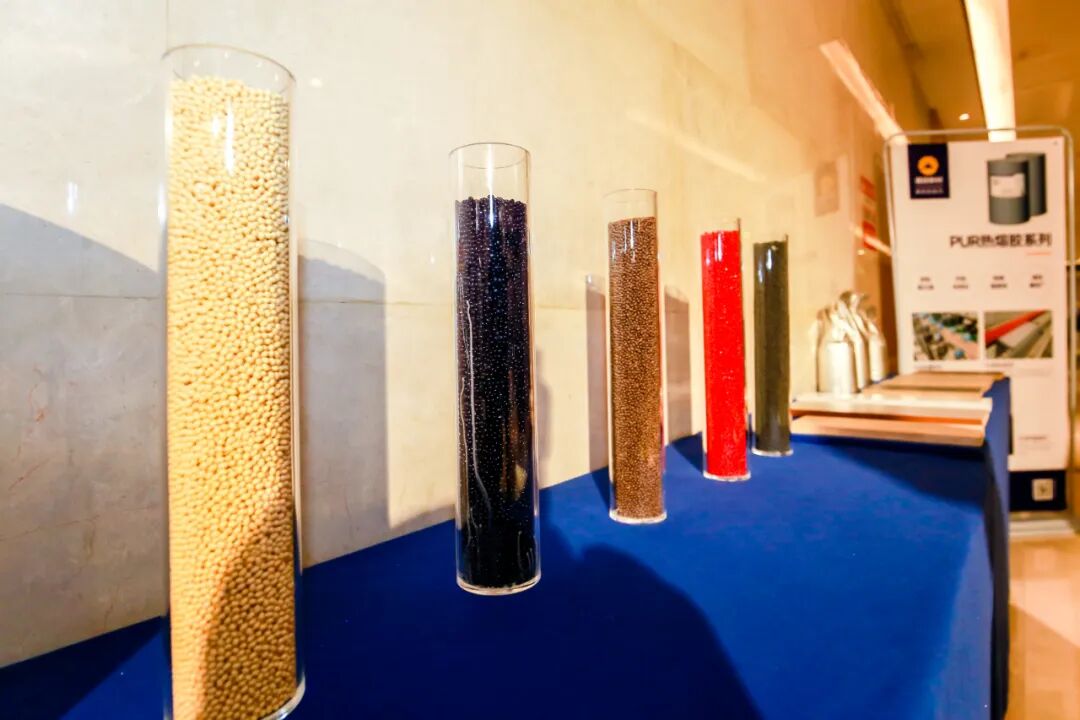 除此之外,展辰新材木工胶粘剂系列产品首次亮相本次盛会,包括PUR热熔胶、EVA热熔胶及水性木工胶等,“胶”往多年,值得信赖,后续展辰新材将持续为广大家具企业提供独具特色的“家具环保涂装一揽子解决方案”和木工胶产品系统解决方案。